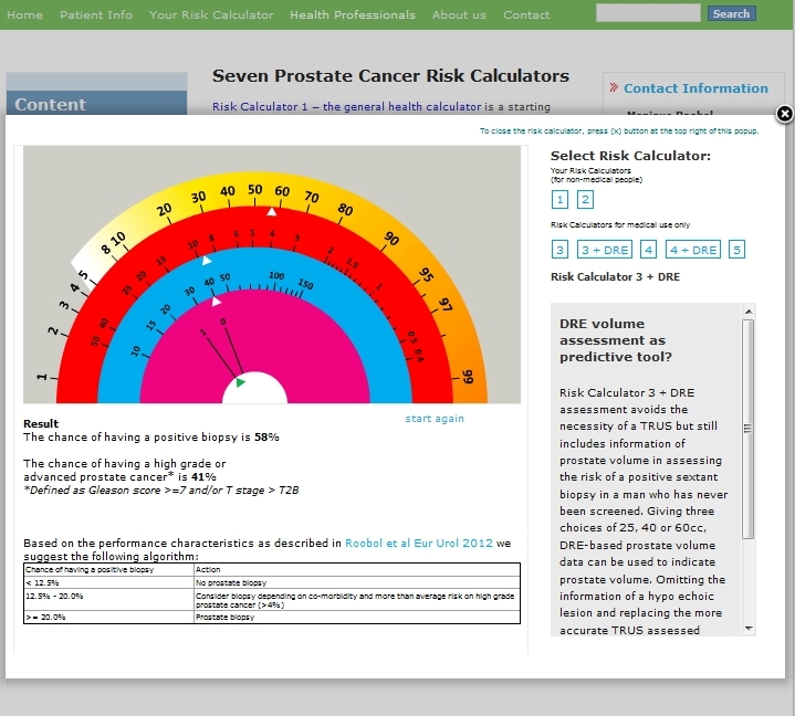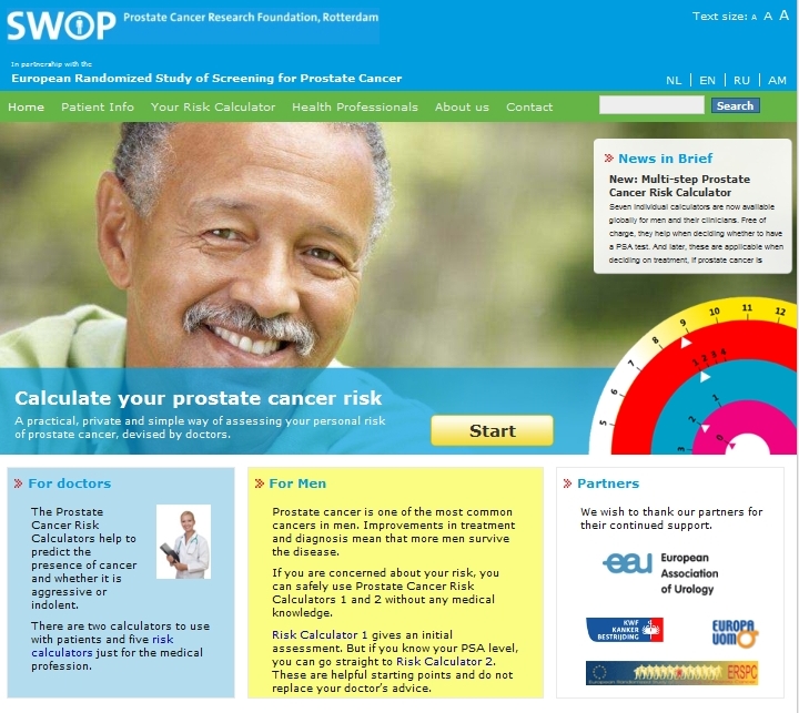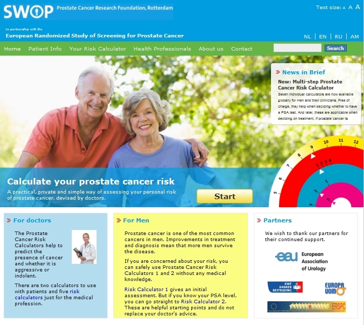 Men worried about prostate cancer have a new online resource, freely available, to help them assess their risk. The multi-step Prostate Cancer Risk Calculator*, (launched 17 May 2012), has been created by the founders of the European Randomized Study of Screening for Prostate Cancer (ERSPC). rpcrcdev.lt.ydeal.pt.